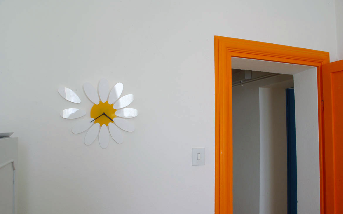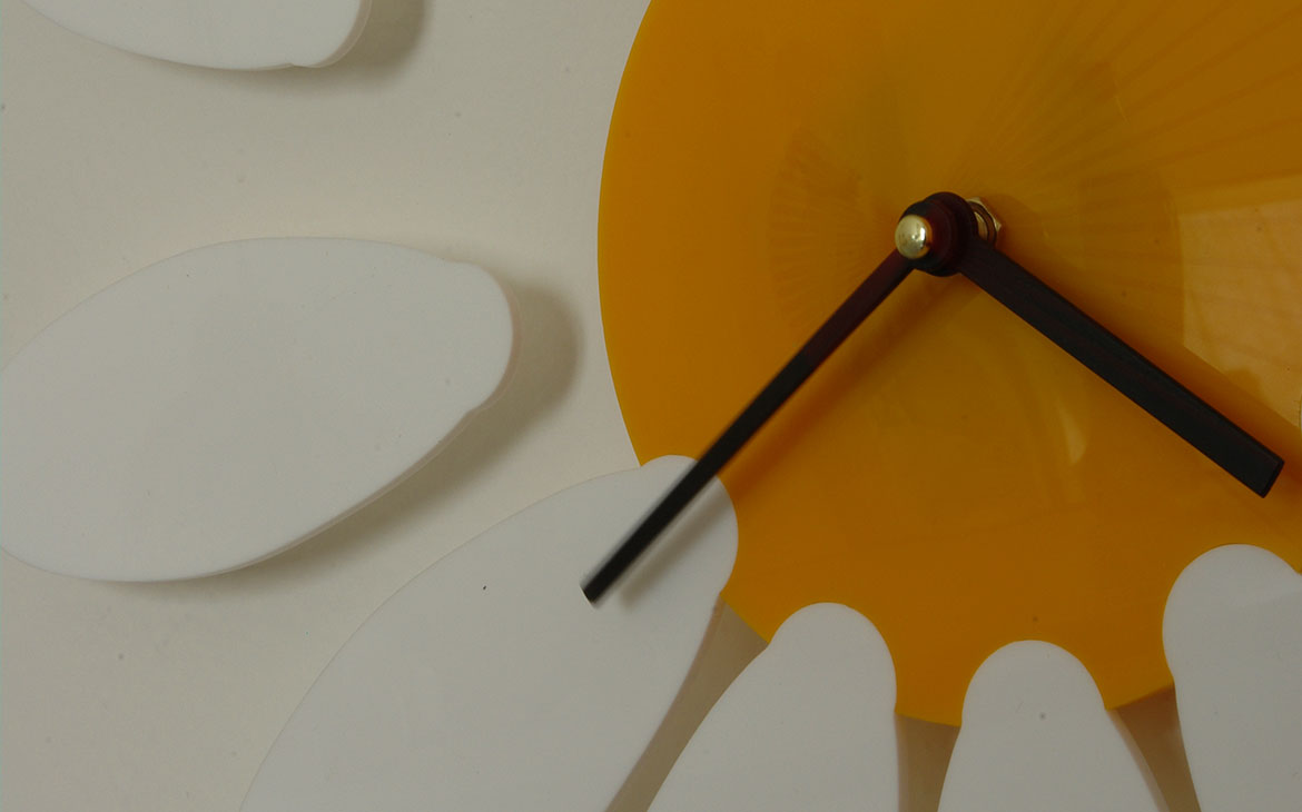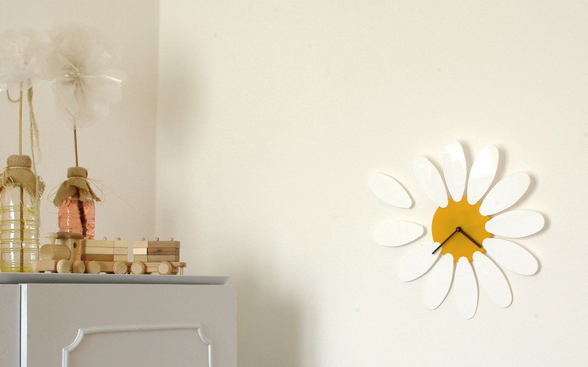 M'ama o non m'ama...m'ama o non m'ama...Un fiore, una margherita, uno splendido orologio da appendere in casa che racconta la storia di un amore, di un tempo che è passato, di un futuro che verrà...Un regalo, un messaggio…Due petali sono applicabili sul muro a piacimento